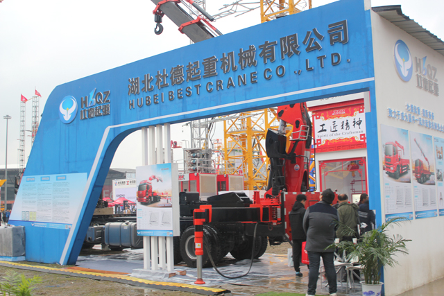 今天是10月15日,第120屆國際進出口交易會在廣州市海珠區如期舉行。 湖北杜德起重機械有限公司此次參展的是SQ1000ZB8+2,國內第一臺10節臂的隨車吊,其新穎的外觀和高